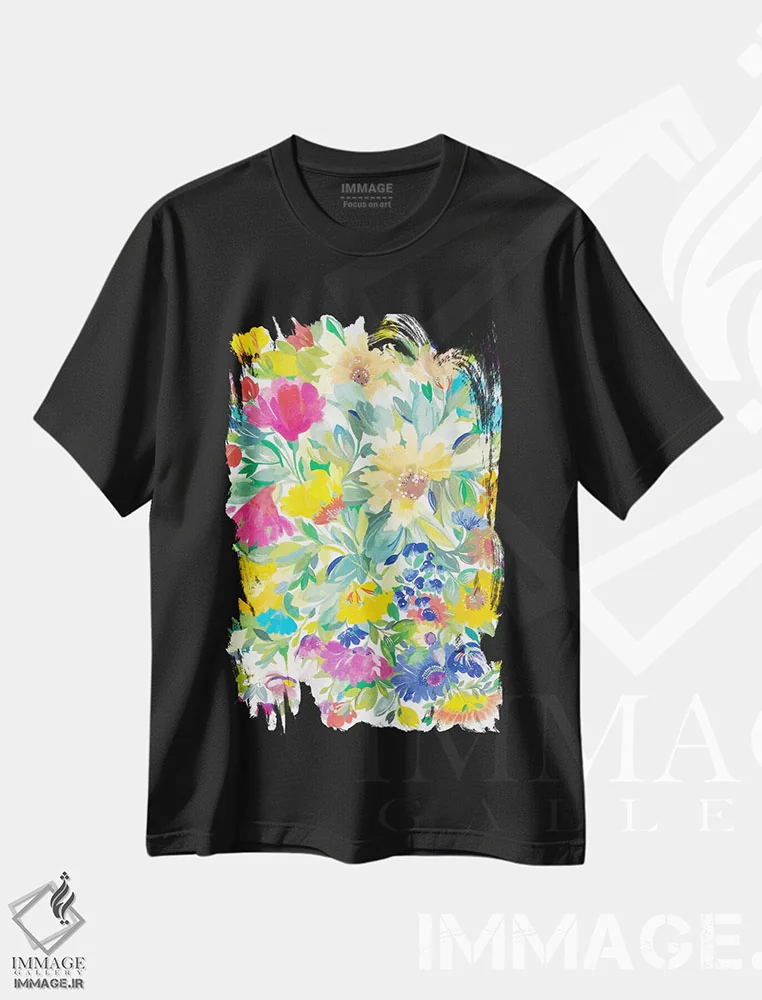 تیشرت مشکی طرح دار دسته گل چمنزار، مدیوم اثر کیم پارکر | immage.ir
