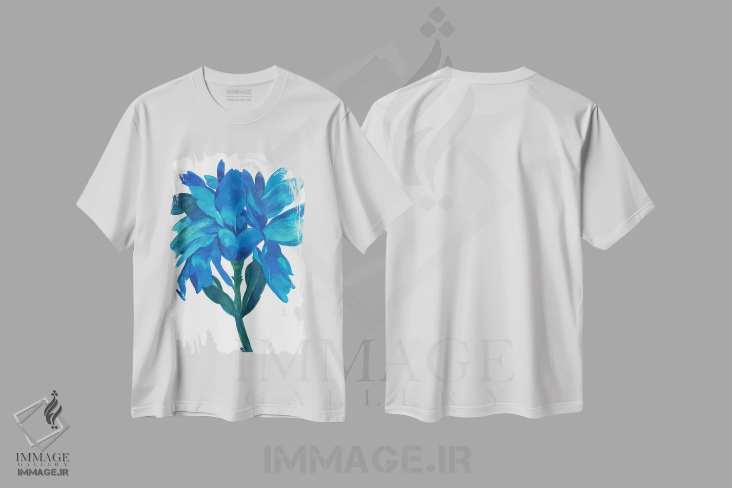 تیشرت سفید طرح دار زنبق آبی، دکور معاصر اثر کیم پارکر | فروشگاه ایماژ