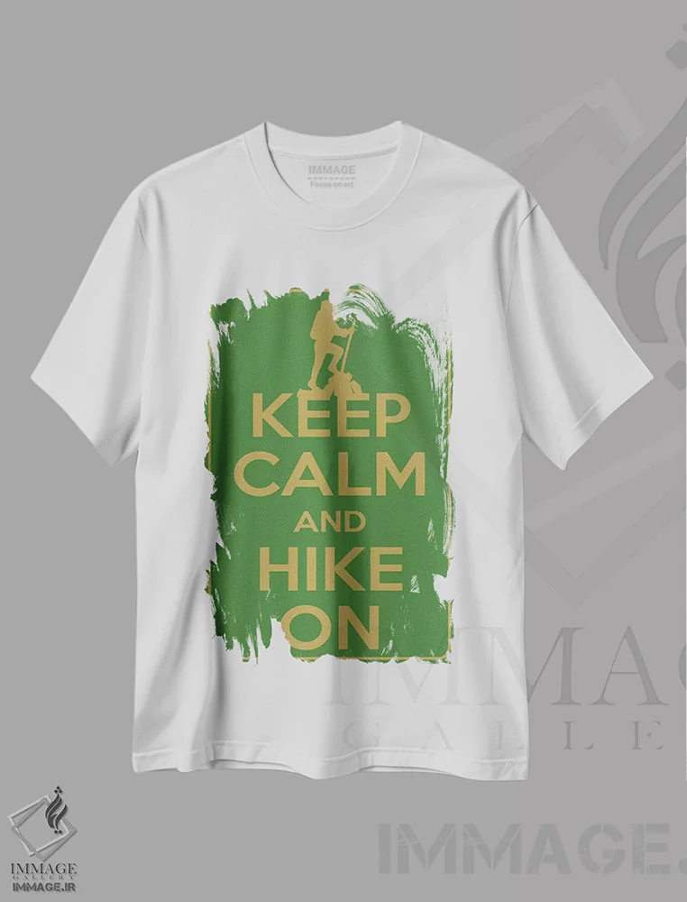 تیشرت سفید طرح دار آرام باش و به کوهنوردی ادامه بده، تزئینی اثر فایو بای فایو کالکتیو | immage.ir