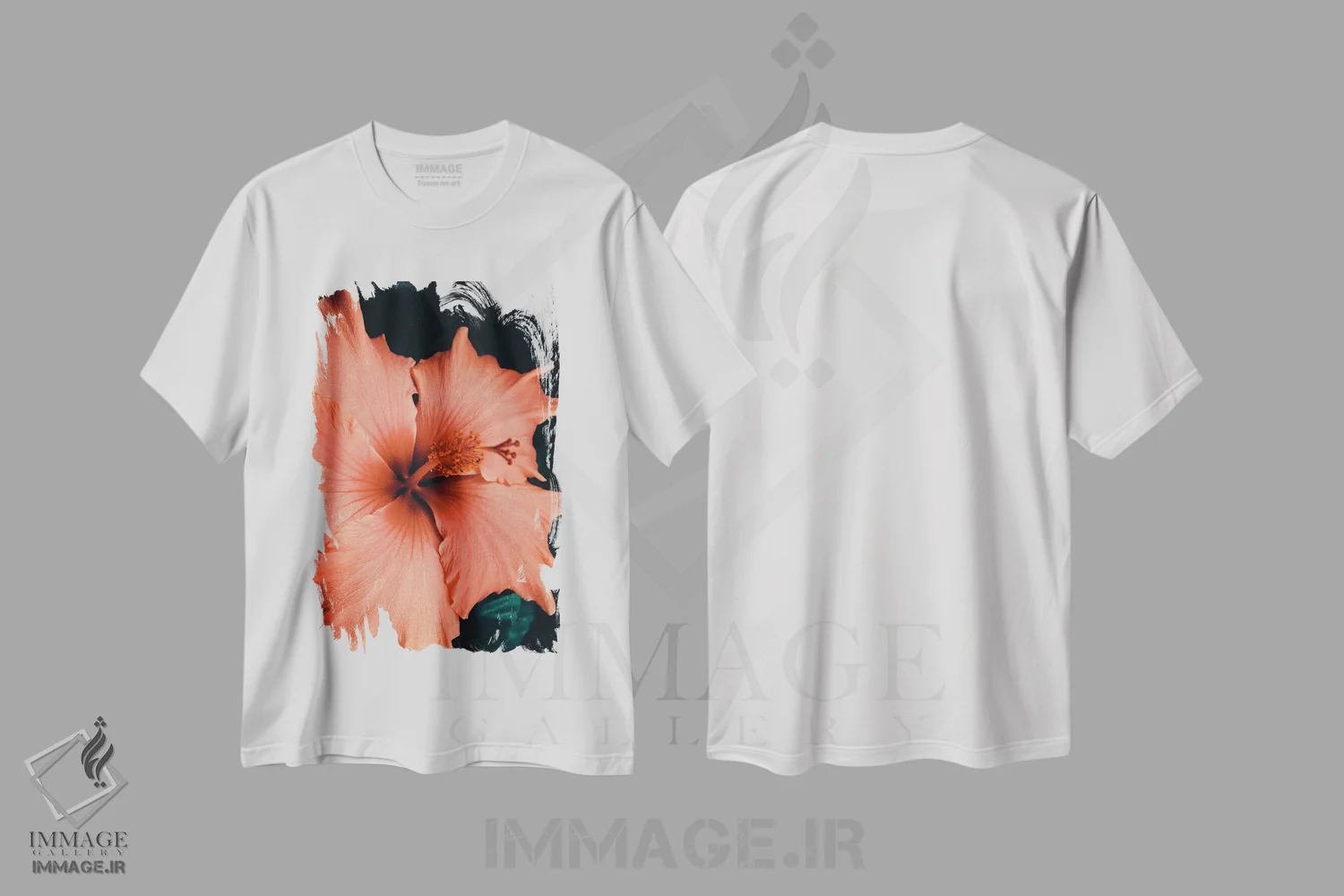 تیشرت طرح دار نمای نزدیک هیبیسکوس صورتی اثر کارلی پرولد