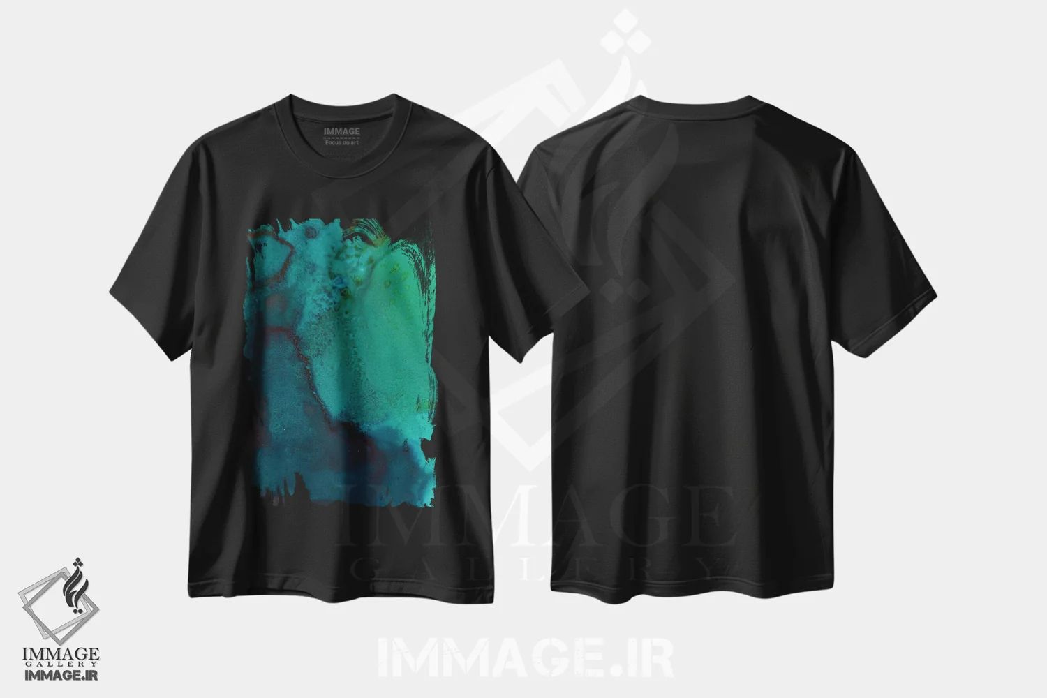 تیشرت مشکی طرح دار آبستره با جوهر الکلی، آبستره اثر کارلی پرولد | فروشگاه ایماژ