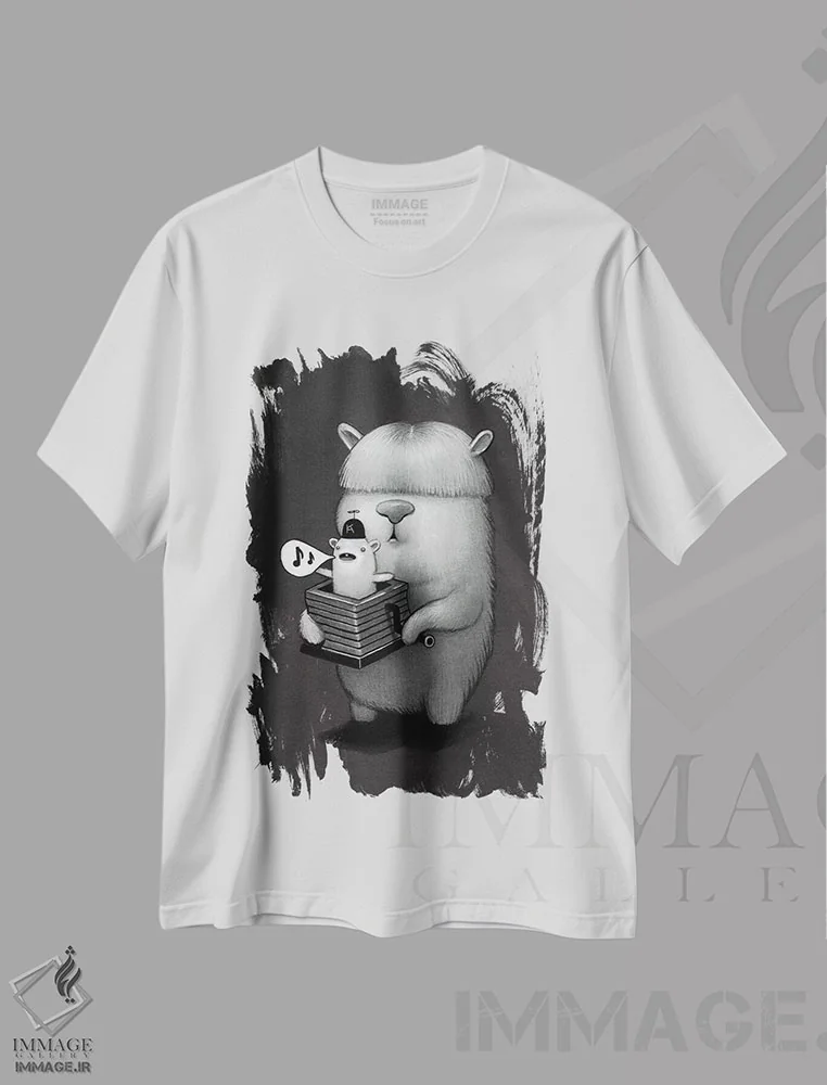 تیشرت سفید طرح دار جعبه موسیقی، هنر فاخر معاصر اثر کریستین آدام | immage.ir