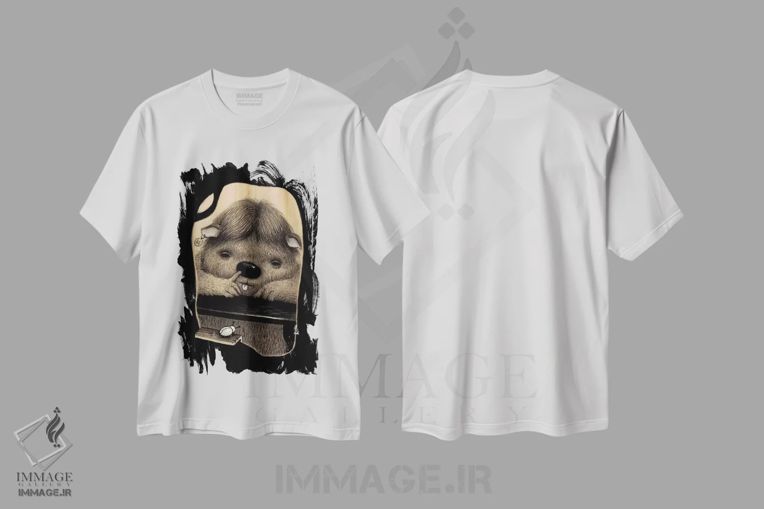 تیشرت سفید طرح دار بی حوصلگی یک شنبه، هنر فاخر معاصر اثر کریستین آدام | فروشگاه ایماژ