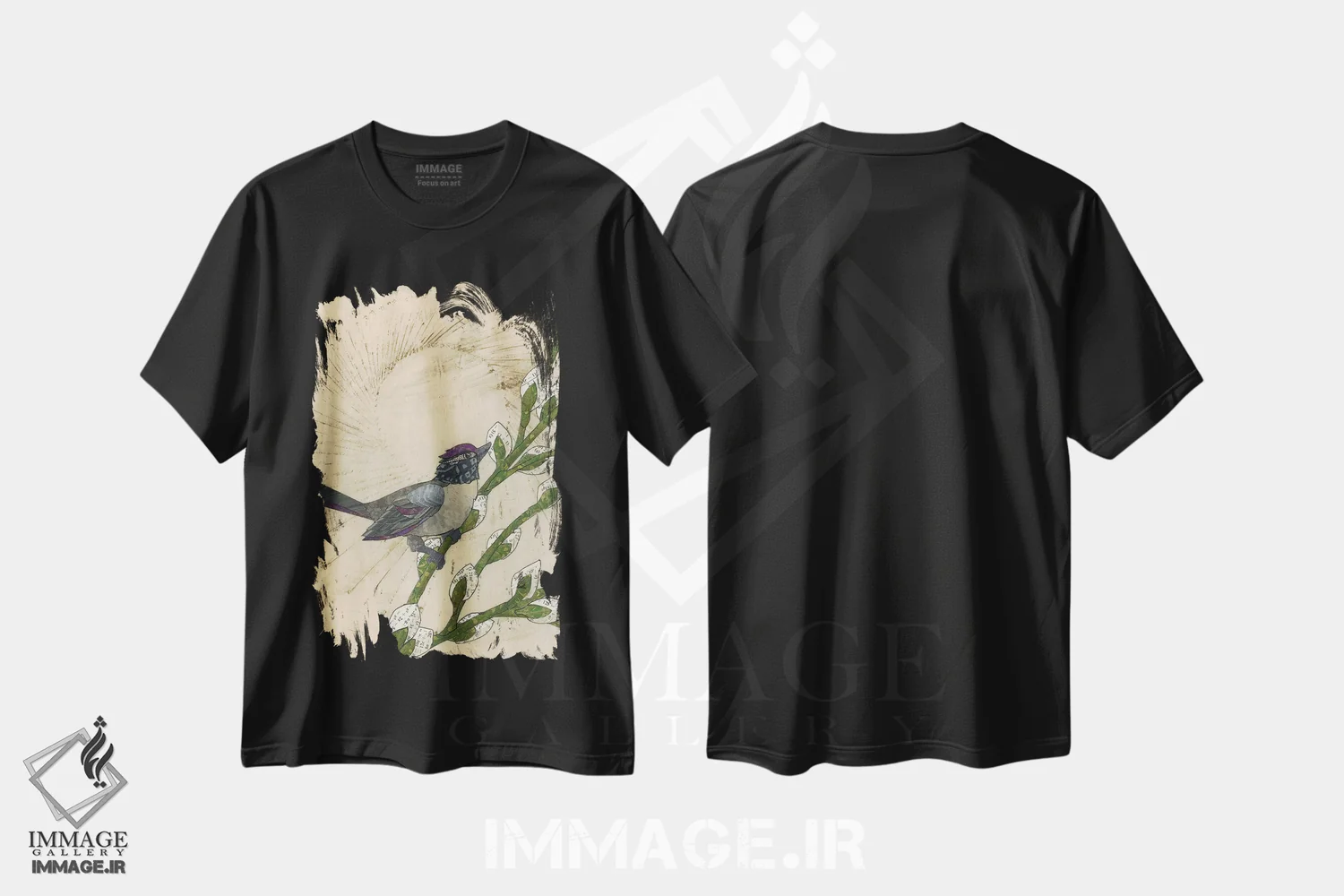 تیشرت مشکی طرح دار پرنده بهاری، دکور معاصر اثر کارن سیکیه | immage.ir