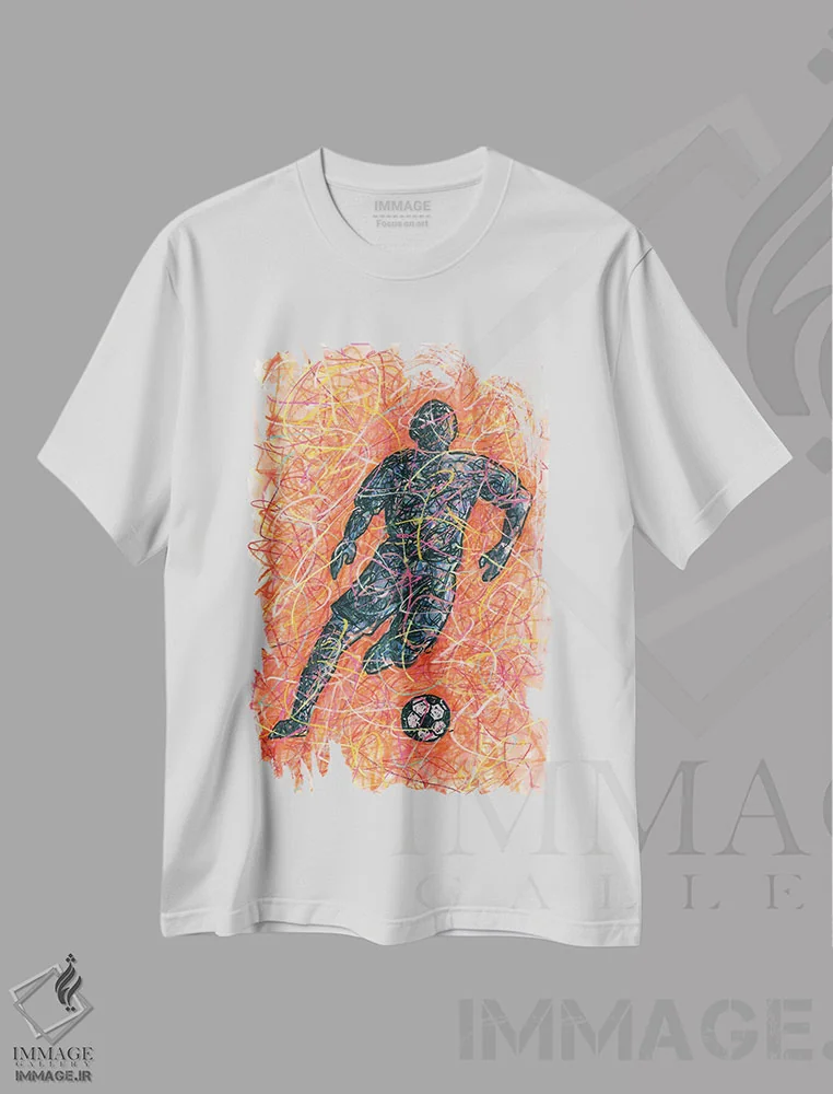 تیشرت سفید طرح دار بازیکن فوتبال مرد، دست نقاشی و طراحی دستی اثر کیت سلام | فروشگاه ایماژ