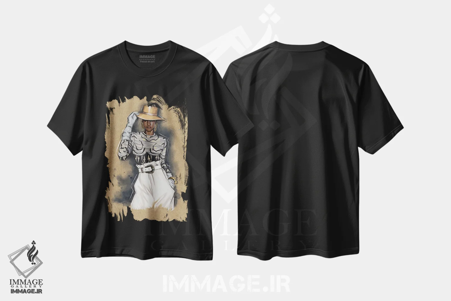 تیشرت مشکی طرح دار آلبرتا، هنر آمریکایی آفریقایی تبار اثر کاترینا پاشه گور | فروشگاه ایماژ