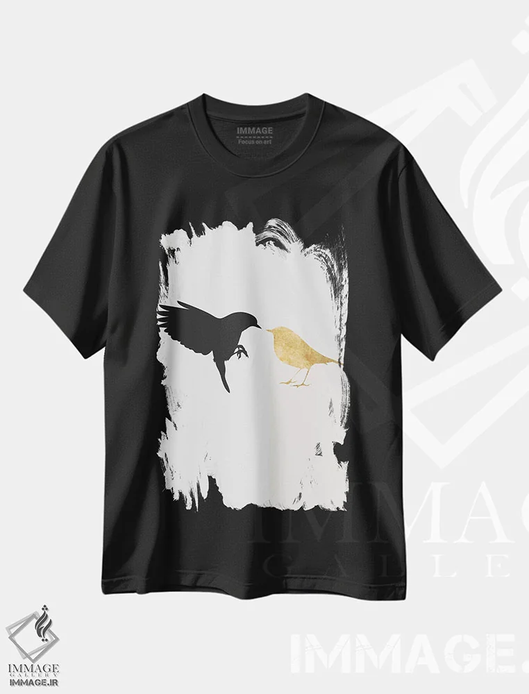 تی شرت هنری «مرغ عشق»؛ مینیمالیسم لطیف برای استایل های شهری آرام