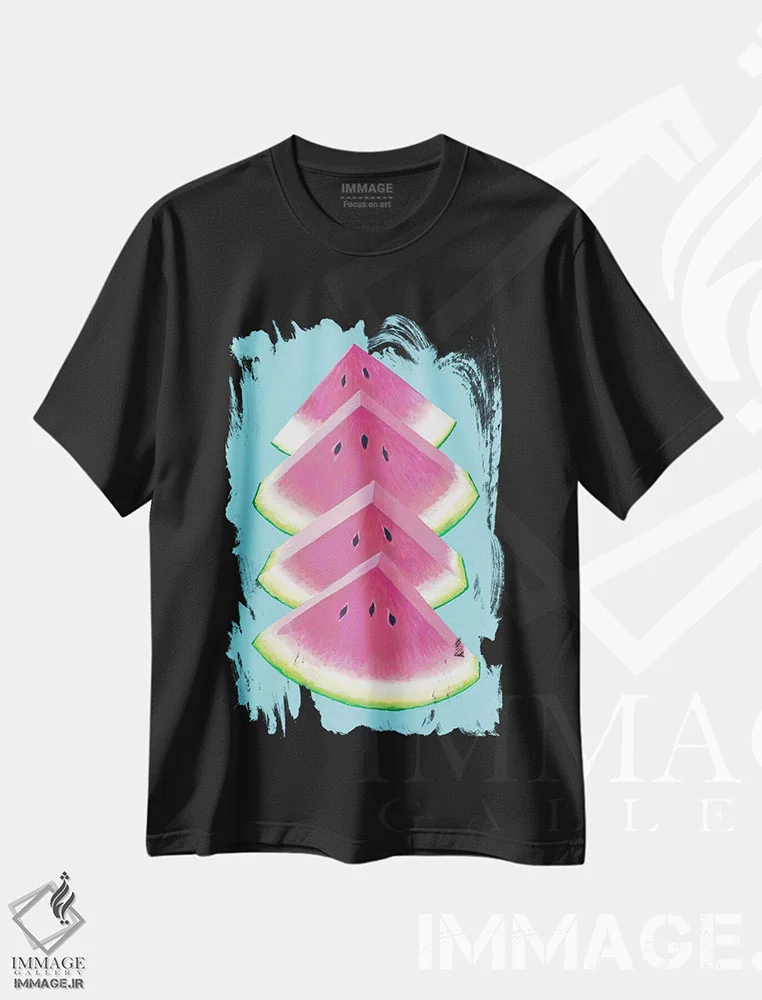 تیشرت مشکی طرح دار قاچ های هندوانه، هنر فاخر معاصر اثر کیرستین وود | immage.ir