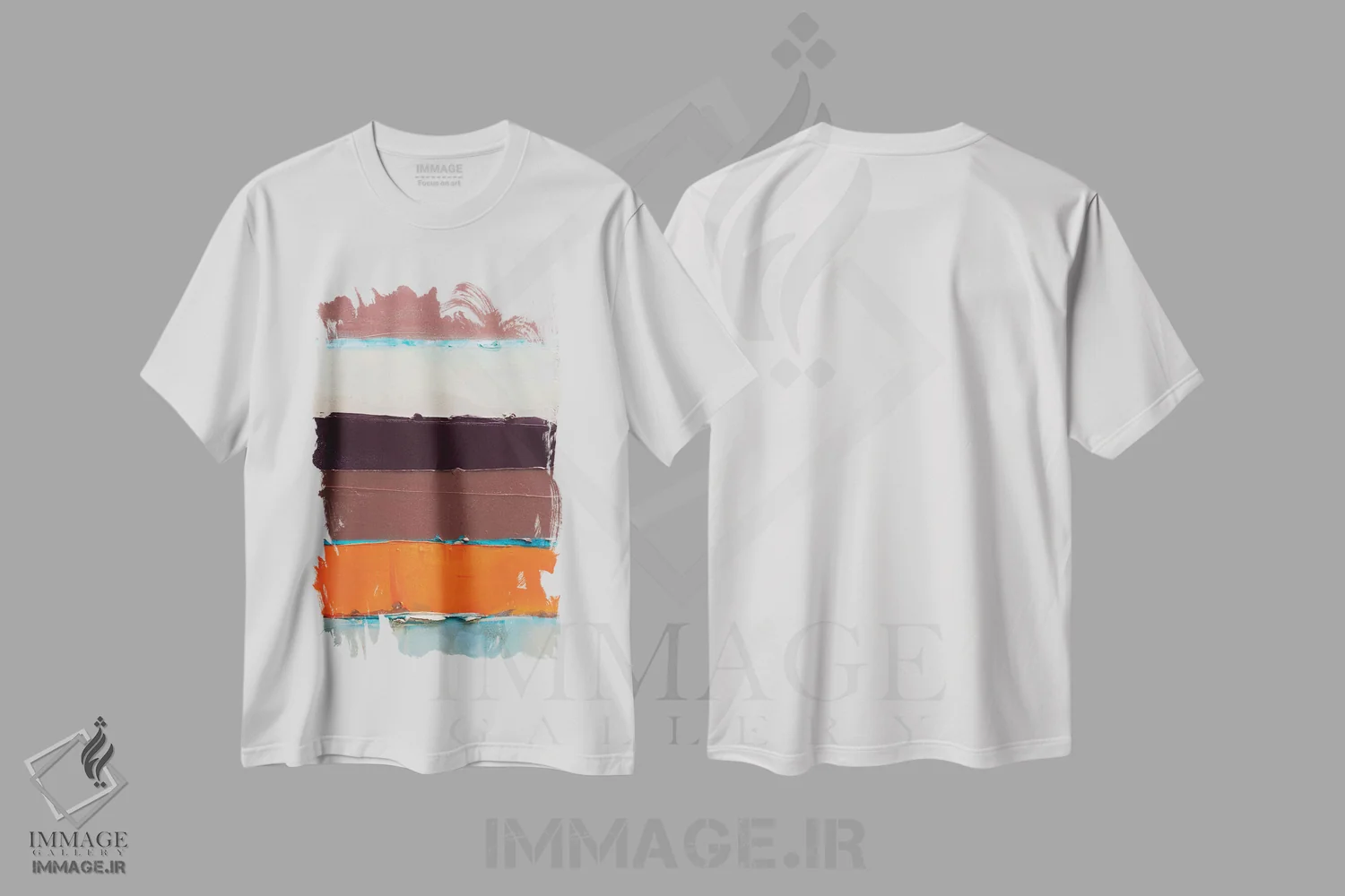 تیشرت سفید طرح دار نارنجی راه راه جدید II، آبستره اثر کنت یانگستروم | immage.ir