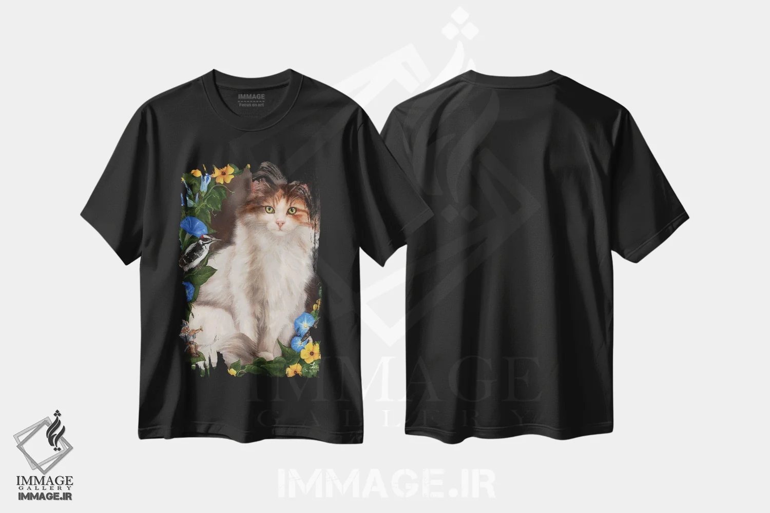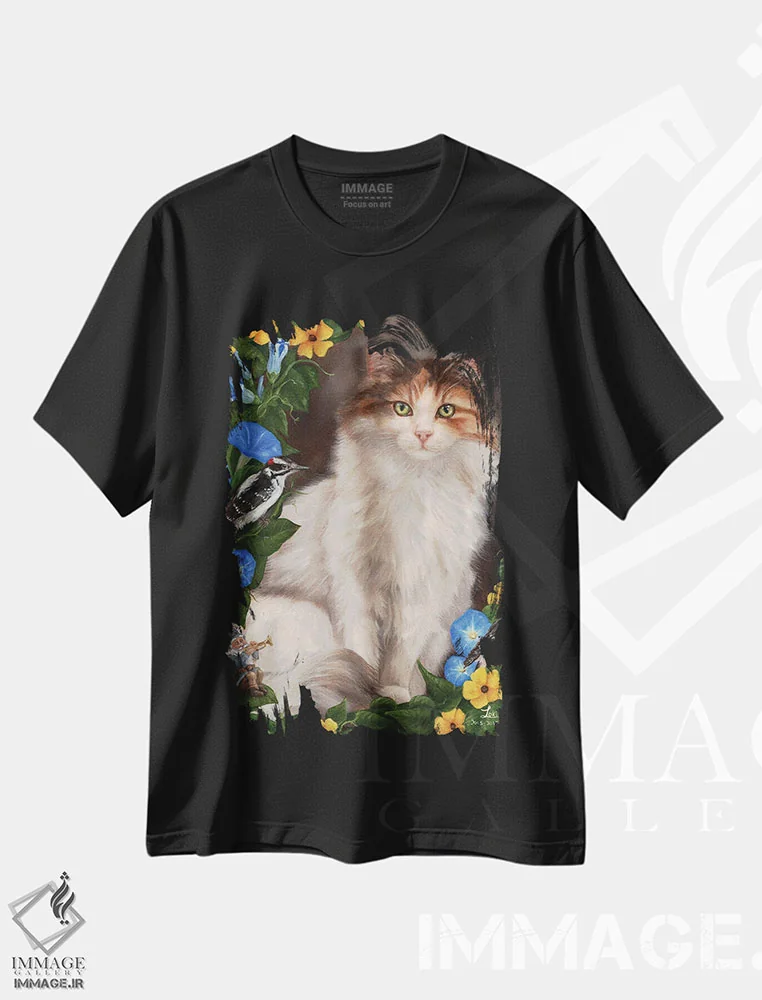تی شرت طرح «در باغ» از کایرا ویلسون؛ لطافت طبیعت و حضور گربه در هنر