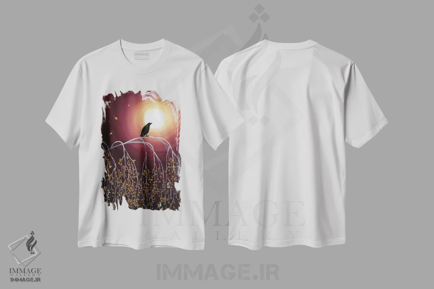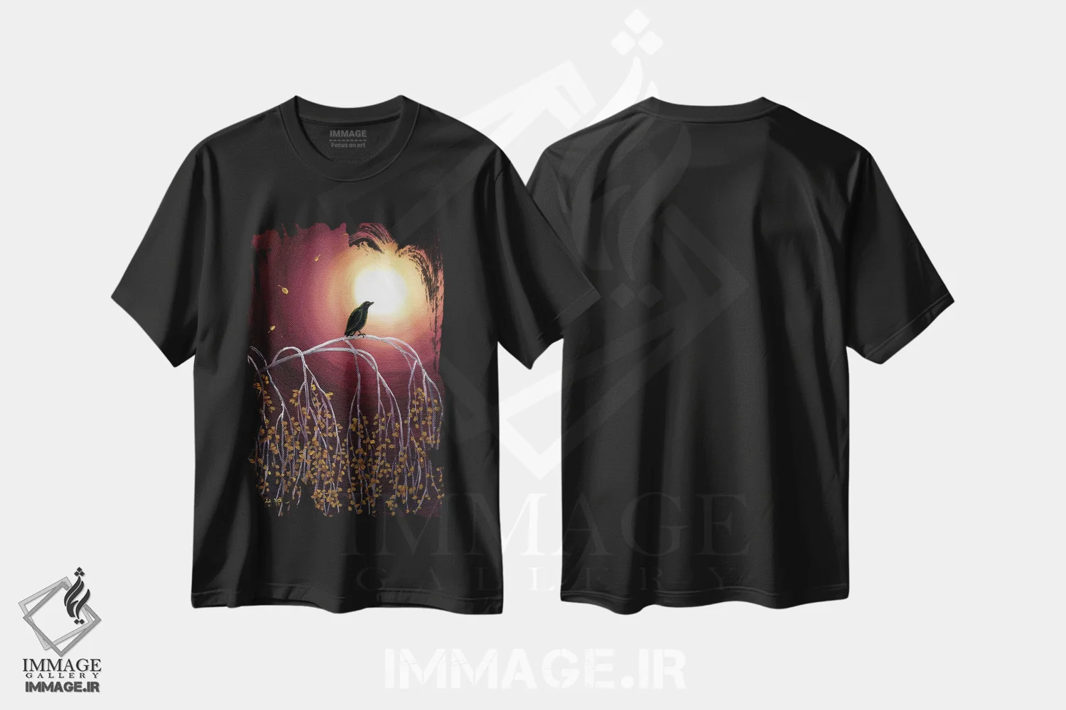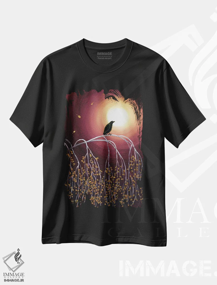 تی شرت «کلاغ سیاه در شاخه های توس سفید»؛ ترکیب مینیمال از تضاد و سکون