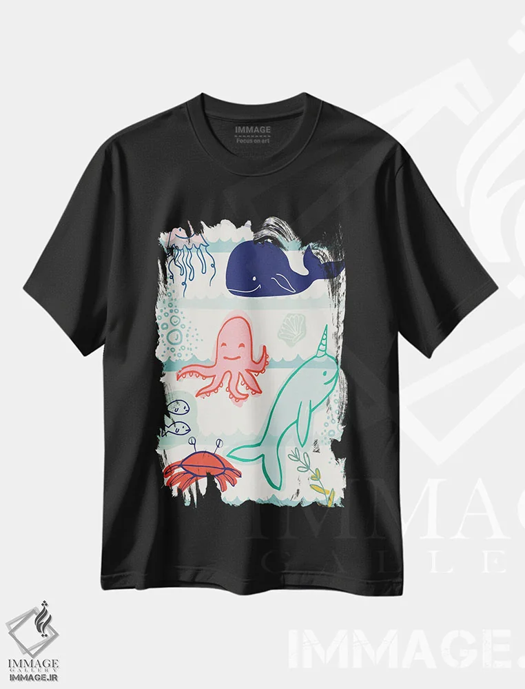 تی شرت هنری «جانوران دریایی»؛ رنگ و جنبش اقیانوس روی پارچه