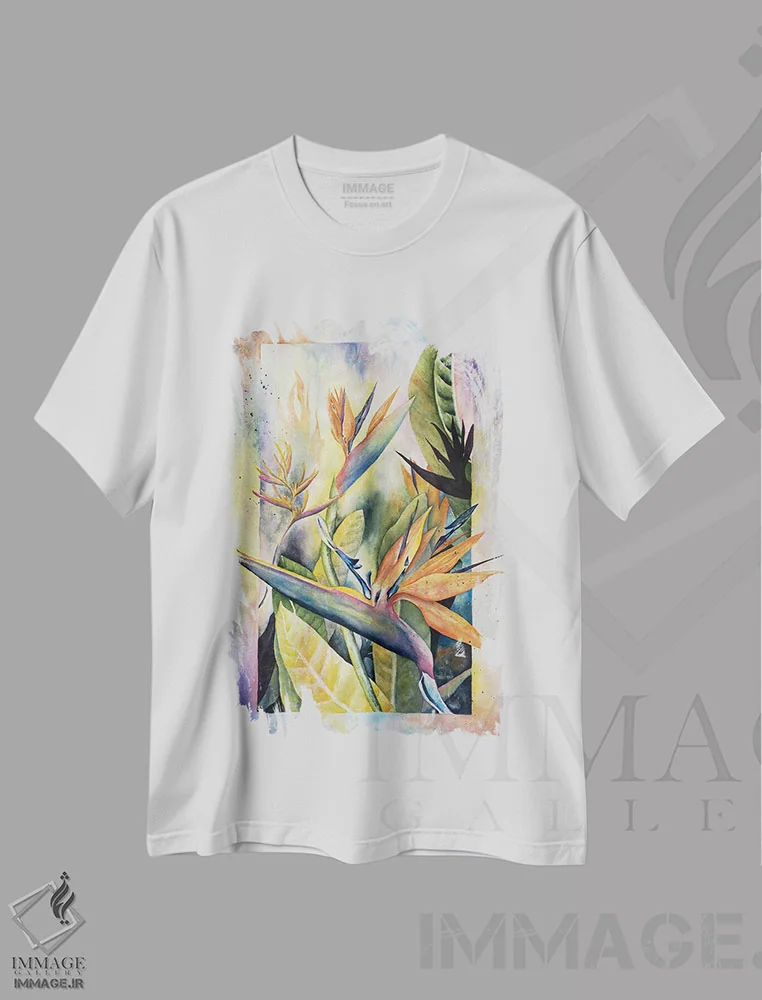 تی شرت گیاه نگار «پرندگان بهشتی»؛ رنگ و زندگی در طرحی استوایی