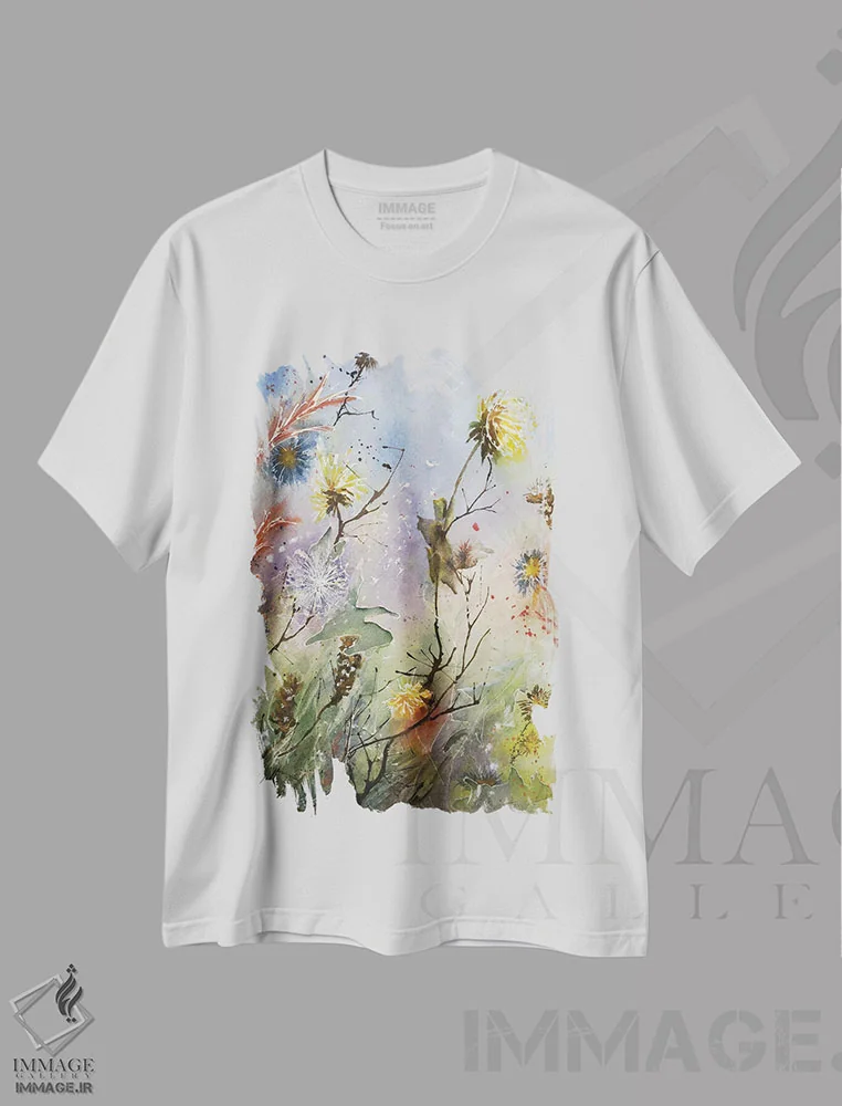 تیشرت سفید طرح دار قاصدک ها و خارها، دکور معاصر اثر لیز کاوینگتون | immage.ir