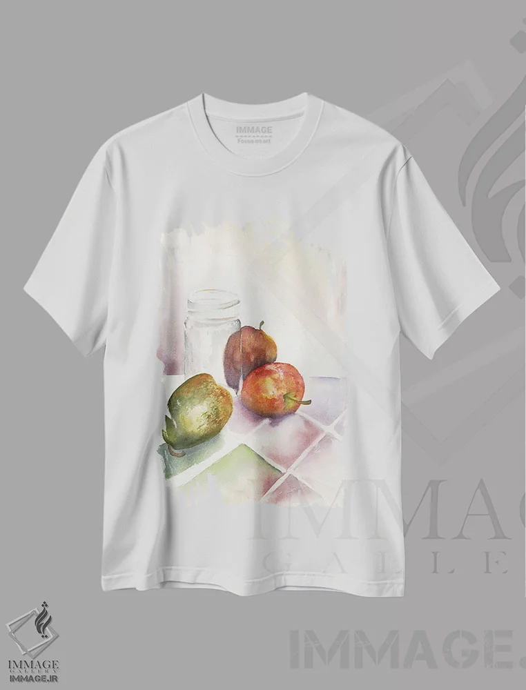 تی شرت طرح «دو سیب و یک گلابی»؛ استایل روزمره با رنگ های خوراکی