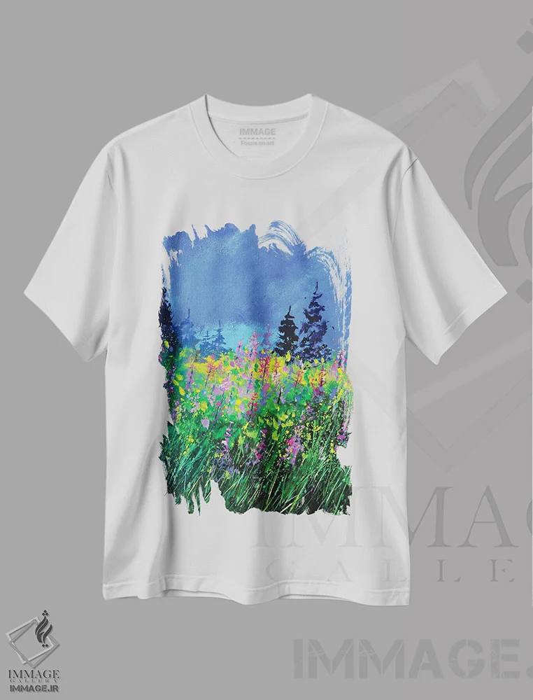 تی شرت «گل های گل مینا»؛ تلفیق طبیعت و هنر انتزاعی در استایل شهری