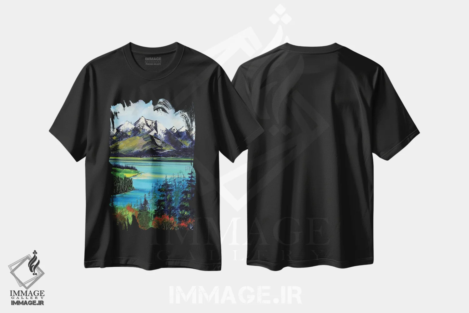 تیشرت مشکی طرح دار ائوراکی، دکور کلبه و لژ اثر لیزا الی | فروشگاه ایماژ