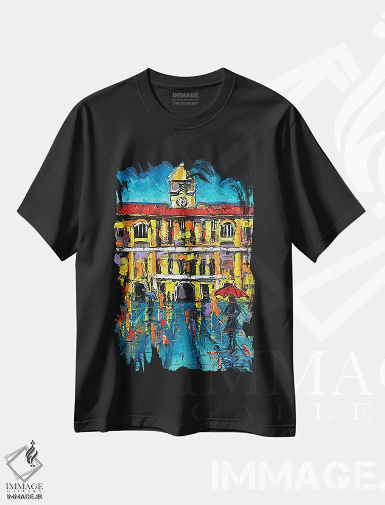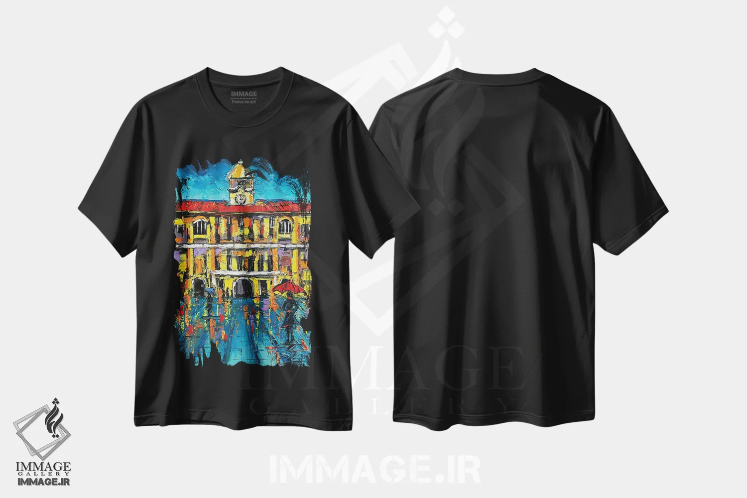 تیشرت مشکی طرح دار ساختمان اسکلهٔ سان فرانسیسکو، هنر فاخر معاصر اثر لیزا الی | immage.ir