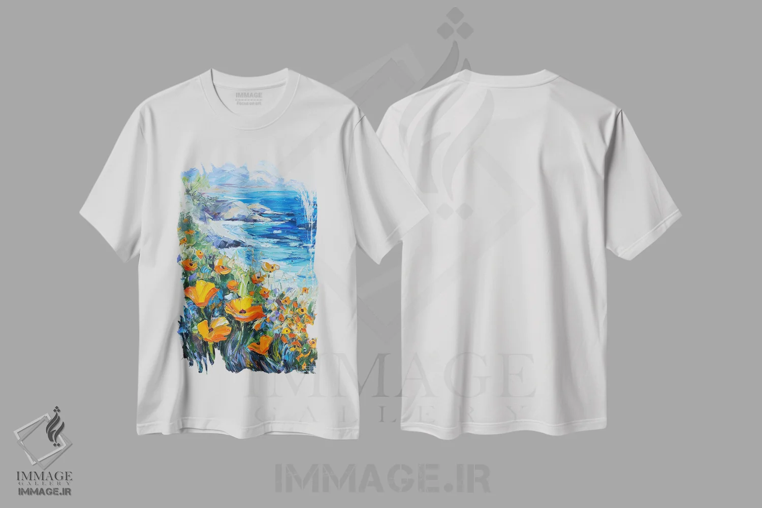 تیشرت سفید طرح دار ون گوگ در ساحل، دکور معاصر اثر لیزا الی | فروشگاه ایماژ