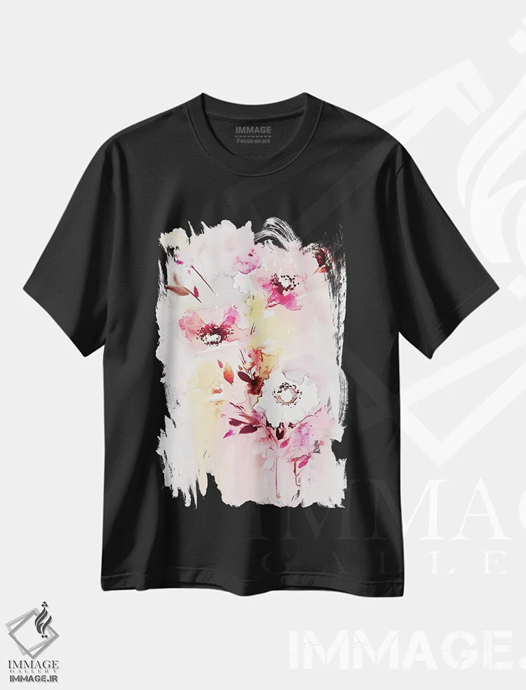 تیشرت مشکی طرح دار دسته گل مینیمال I، تزئینی اثر لسیا بینکین | immage.ir