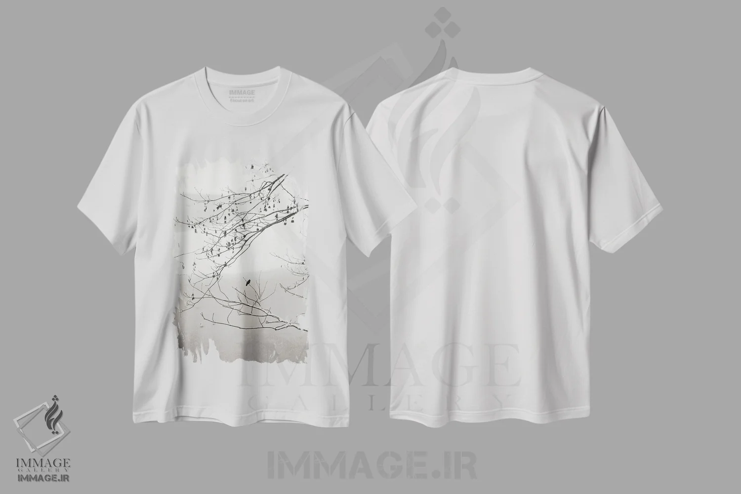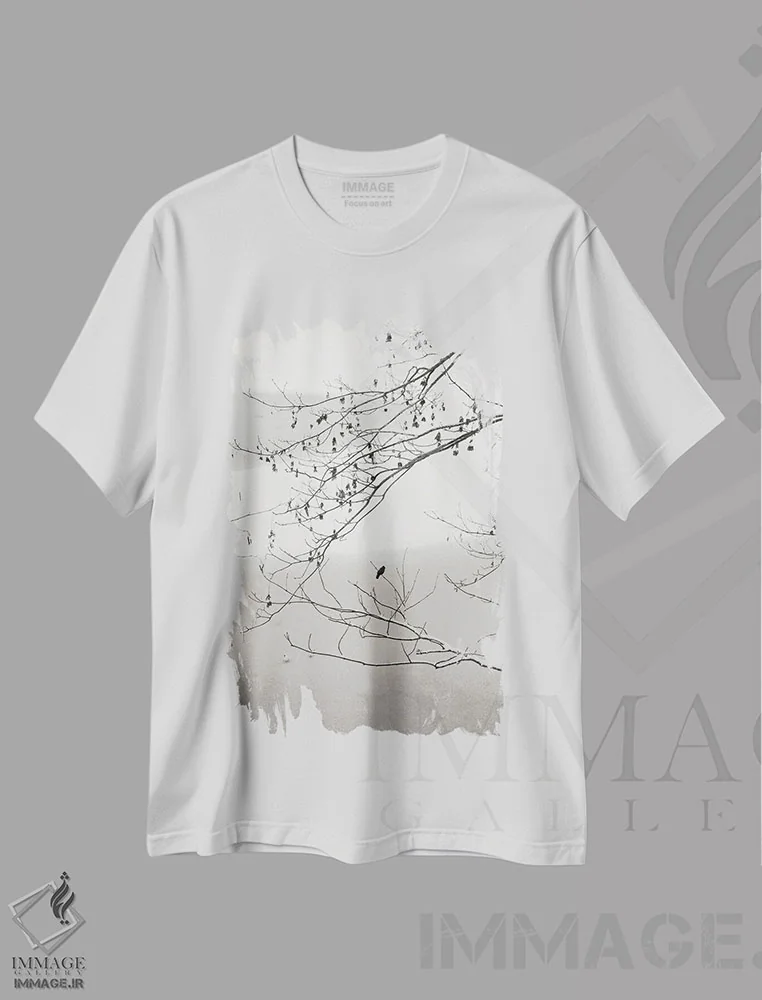 تیشرت سفید طرح دار روی تالاب یخ زده، مدیوم اثر لنا وایسبک | immage.ir