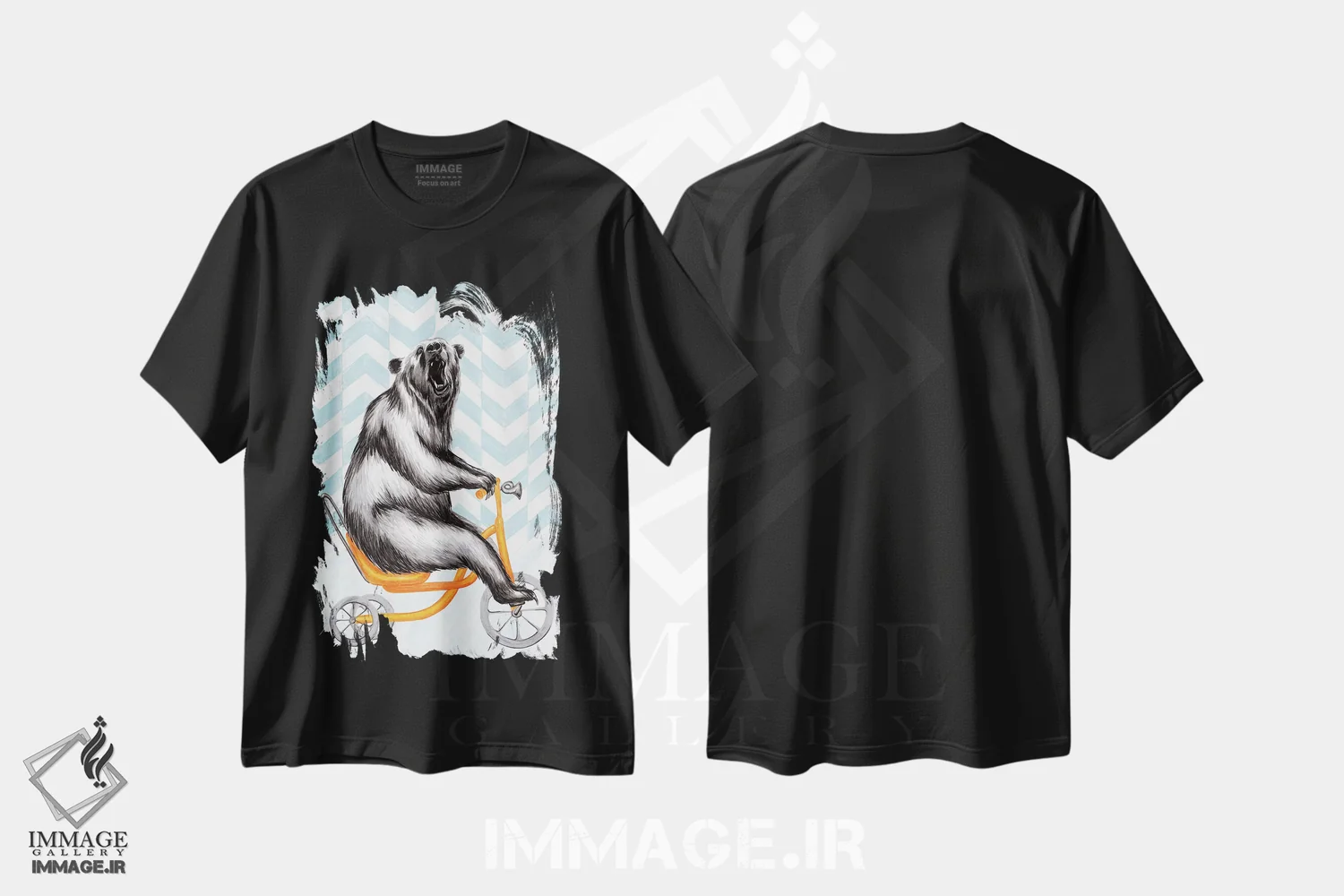 تیشرت مشکی طرح دار خرس روی دوچرخه، تزئینی اثر آملی لگو | فروشگاه ایماژ