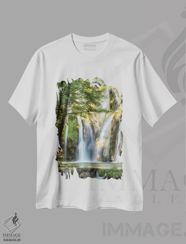 تی شرت طرح «آبشار»؛ تلفیق آرامش و لطافت طبیعت