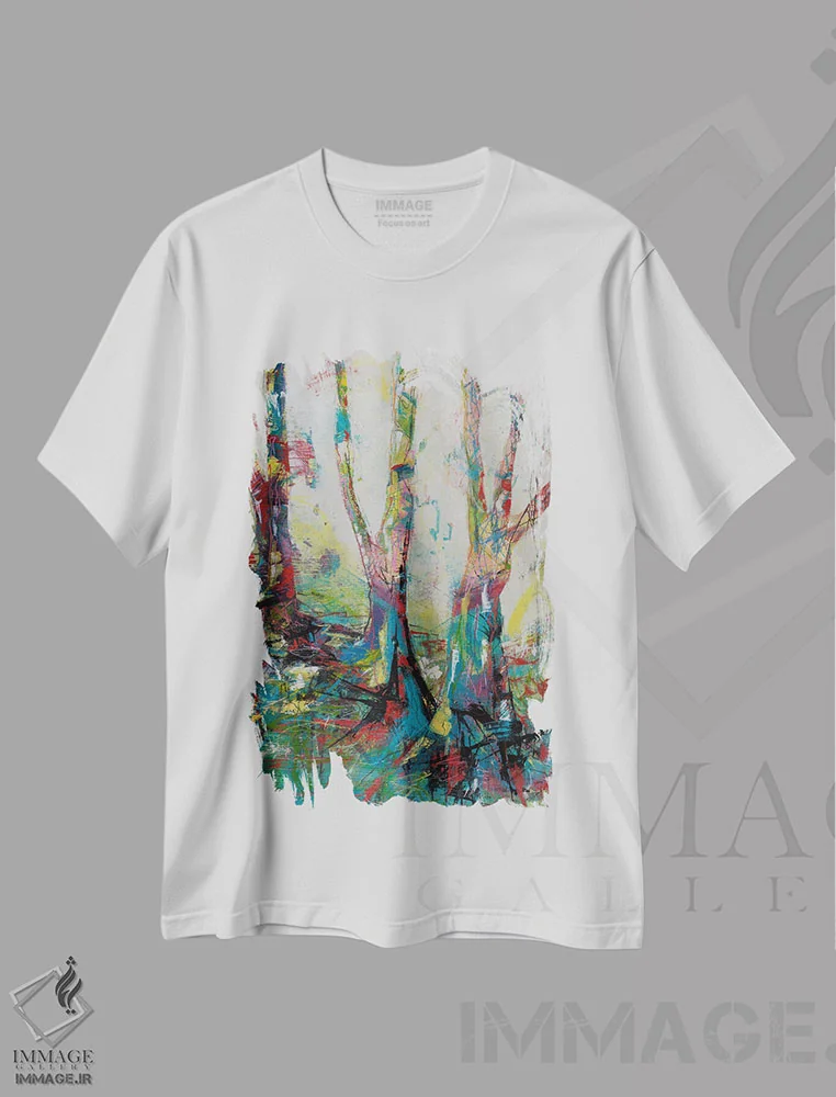 تی شرت طرح «اجرای صندوقی»؛ درختان انتزاعی و رنگ های آرام برای استایل روزمره