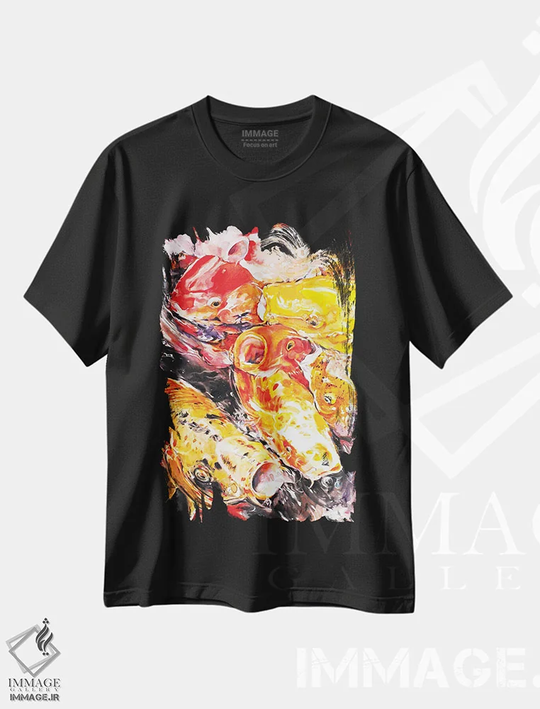 تیشرت مشکی طرح دار جذابیت ماهی کوی، دکور آسیایی اثر سو بنگ لیم | فروشگاه ایماژ