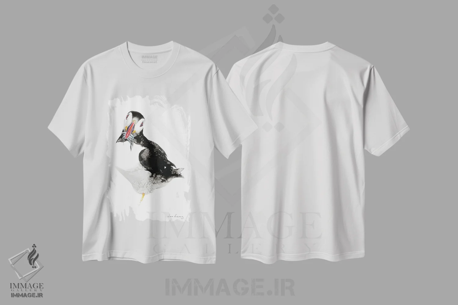 تیشرت سفید طرح دار لذت ماهی مرغ دریایی، دکور معاصر اثر سو بنگ لیم | فروشگاه ایماژ