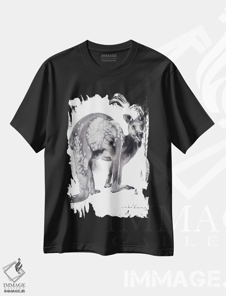 تی شرت طرح «کانگورو آرام (ذن)»؛ سکون و قدرت در طراحی سیاه وسفید