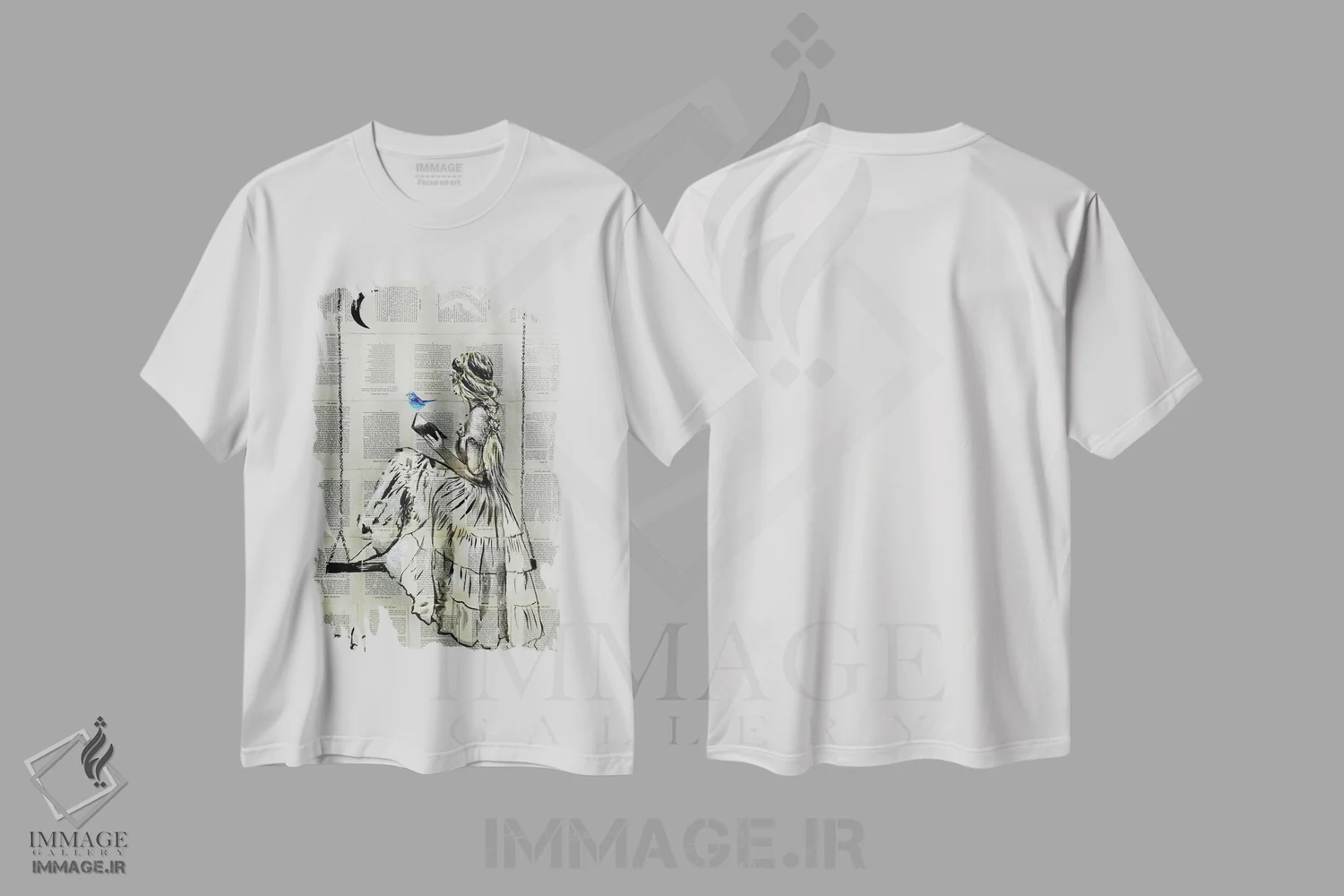تیشرت سفید طرح دار امید جاری، هنر فاخر معاصر اثر لوی جوور | immage.ir