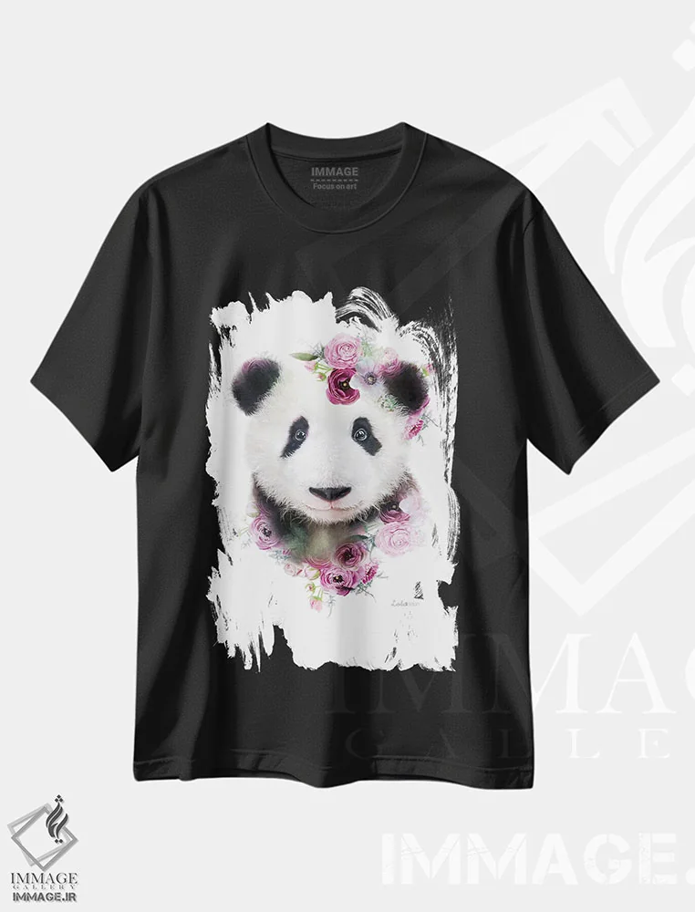 تیشرت مشکی طرح دار پاندا گیاهی حیات وحش، هنر دیجیتال اثر لولا دیزاین | immage.ir