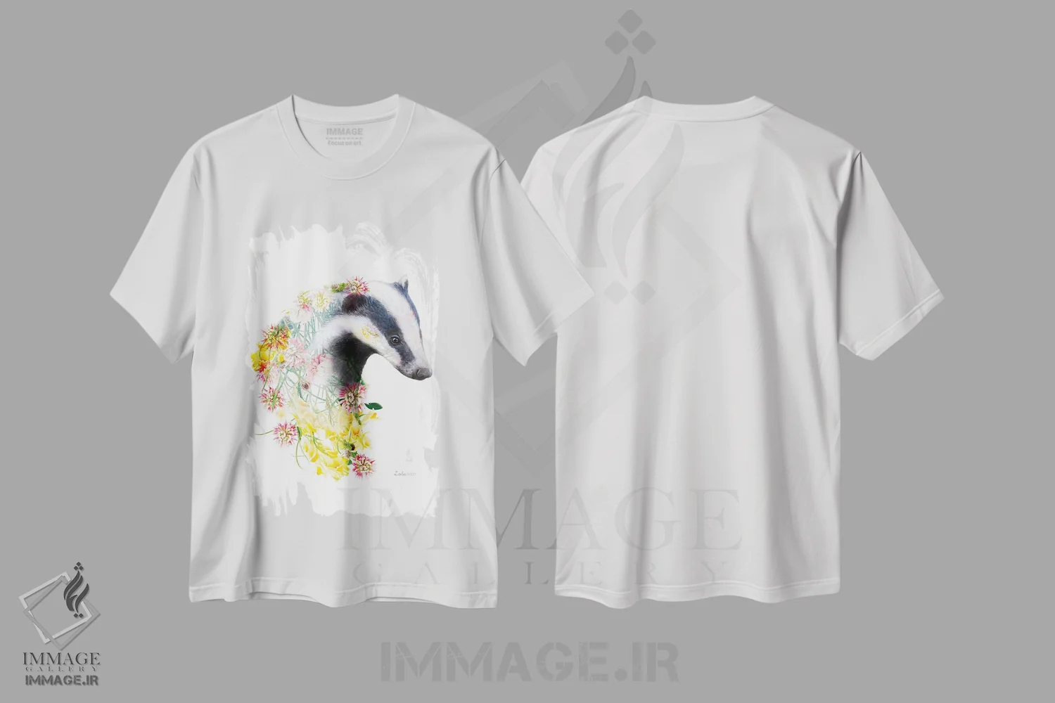 تیشرت سفید طرح دار گورکن گیاهی حیات وحش، هنر دیجیتال اثر لولا دیزاین | immage.ir
