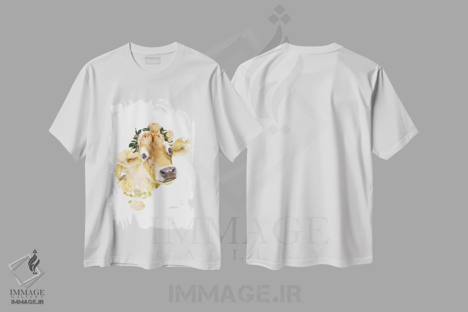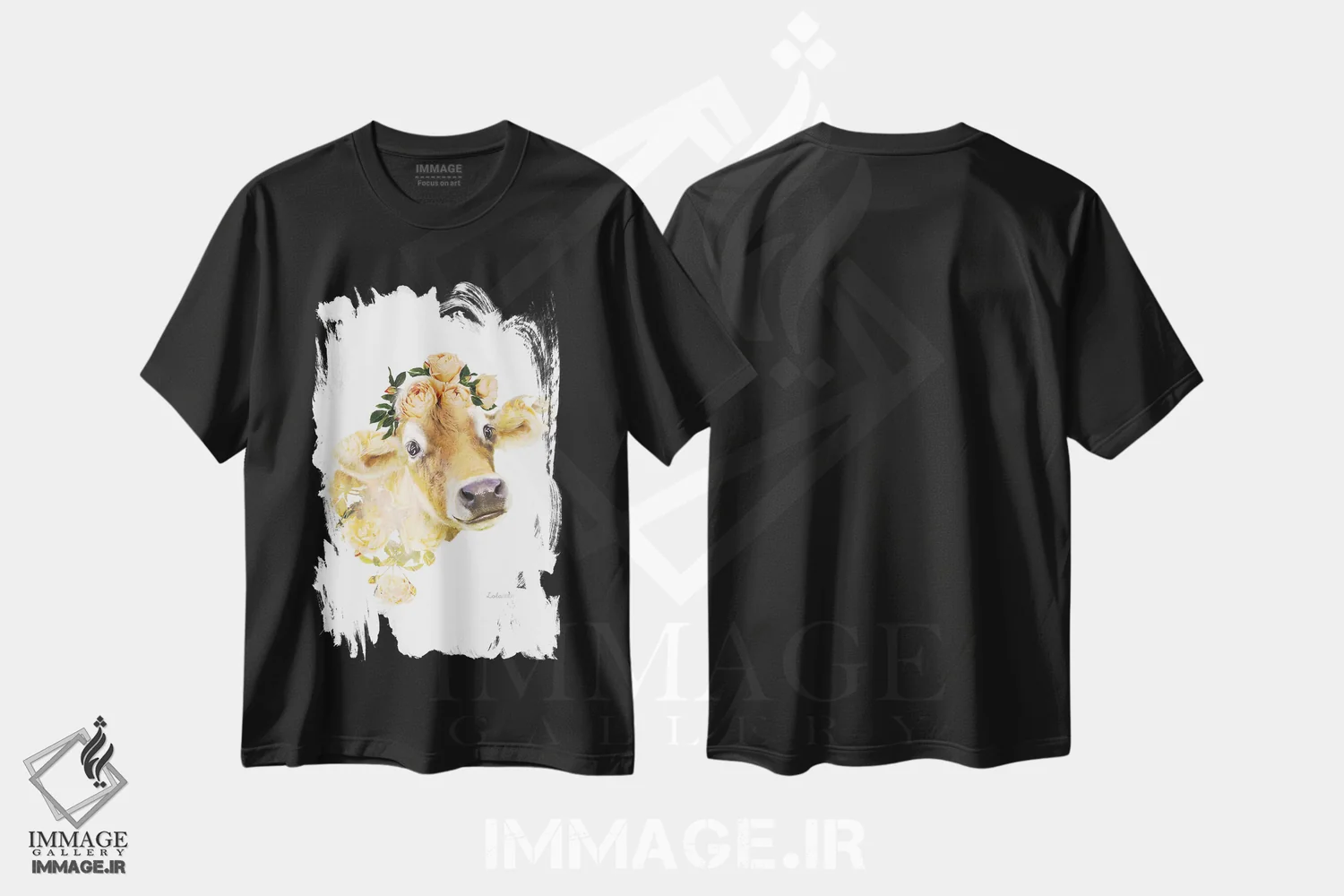 تیشرت طرح دار گاو جرسی با تم گیاهی و حیات وحش اثر لولا دیزاین