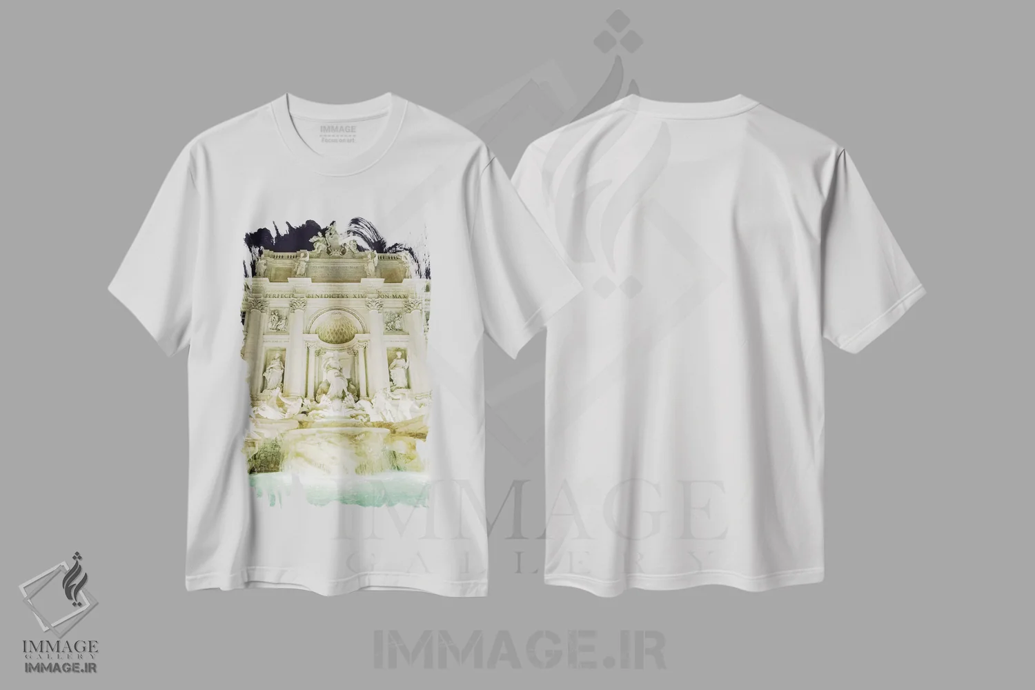 تیشرت سفید طرح دار Rome, Italy,فواره تروی در شب، رم، ایتالیا، مدیوم اثر لاولی لیتل هوم کو | immage.ir