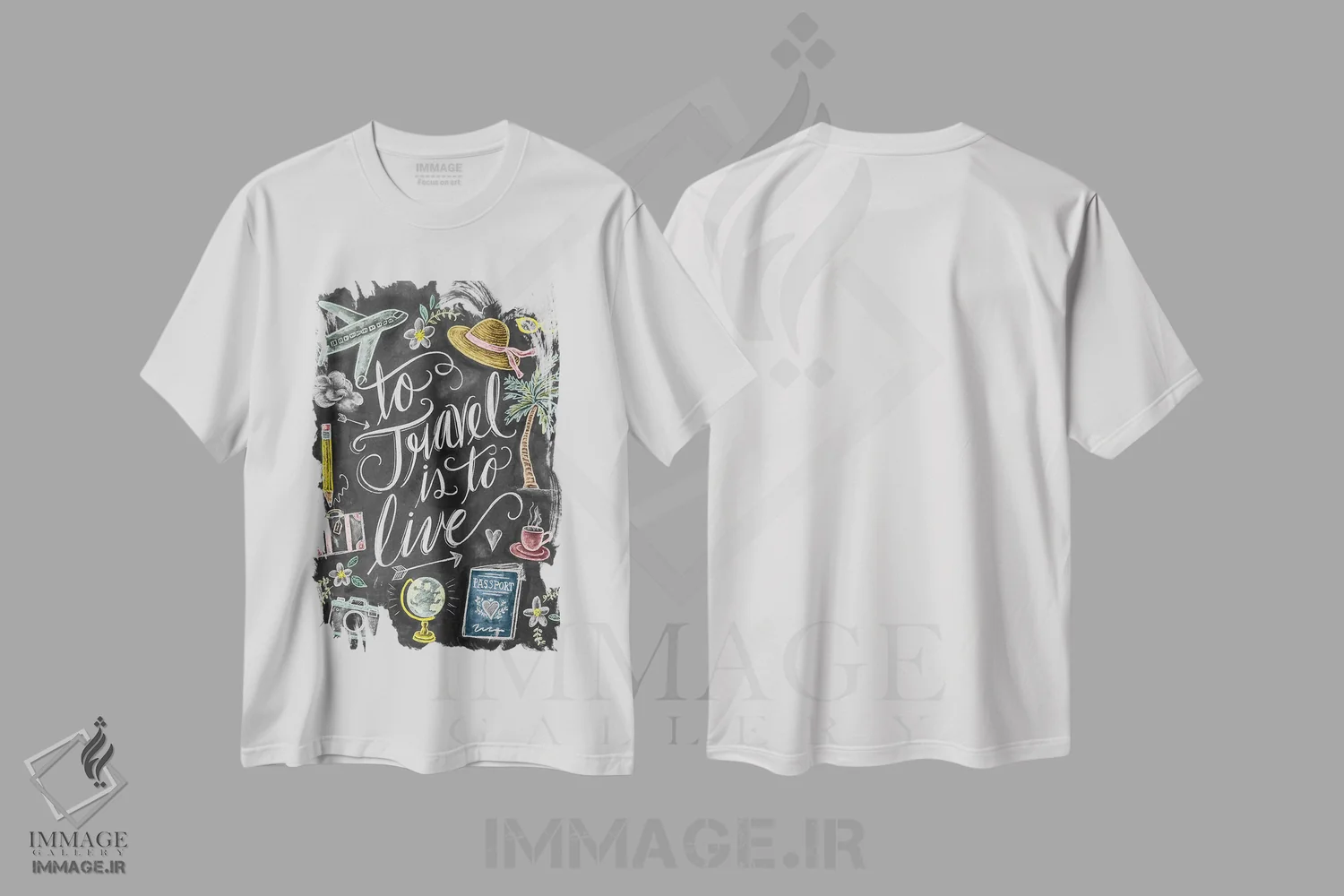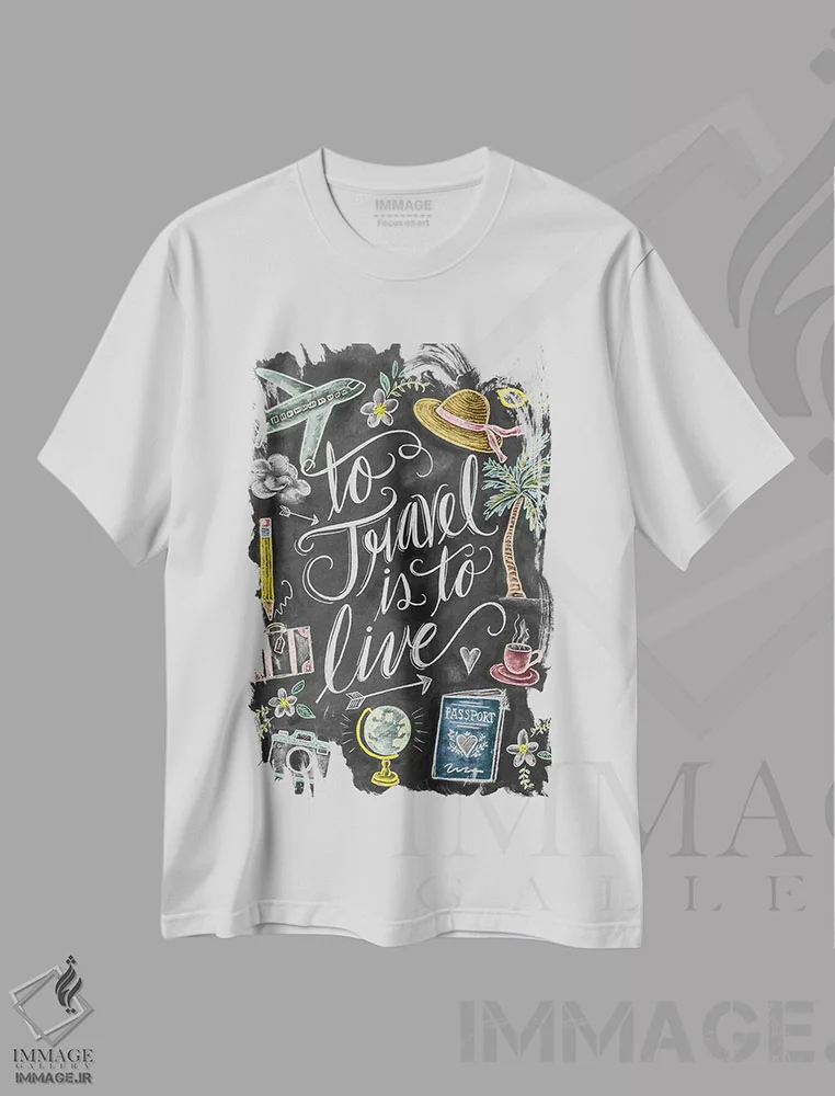 تیشرت سفید طرح دار سفر کردن یعنی زندگی کردن، دست نقاشی و طراحی دستی اثر لیلی و ول | immage.ir
