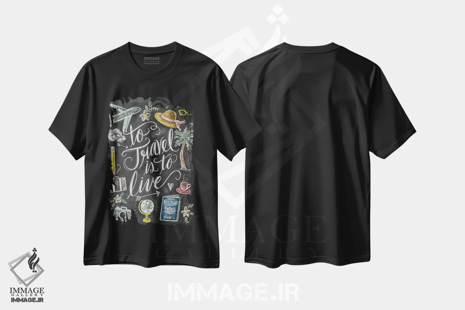 تیشرت مشکی طرح دار سفر کردن یعنی زندگی کردن، دست نقاشی و طراحی دستی اثر لیلی و ول | فروشگاه ایماژ
