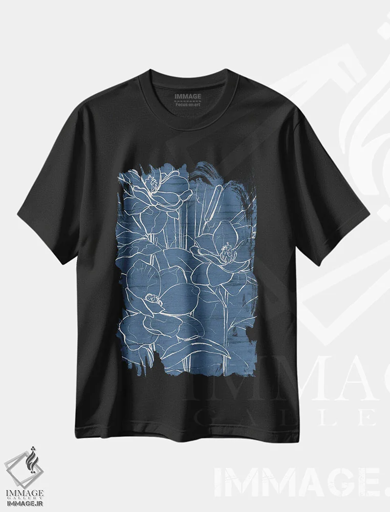 تی شرت طرح «گل روی زمینه سرمه ای» برای استایل های مینیمال و ظریف