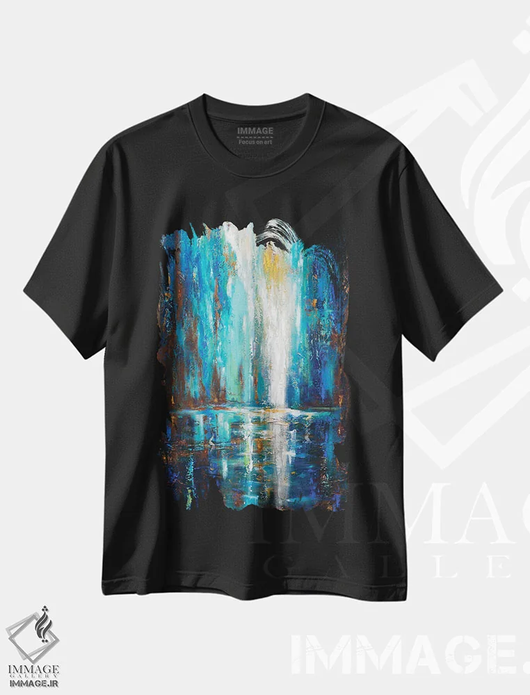 تی شرت هنری «آبشارِ لیندا اولسن»؛ جریان رنگ و حس طبیعت