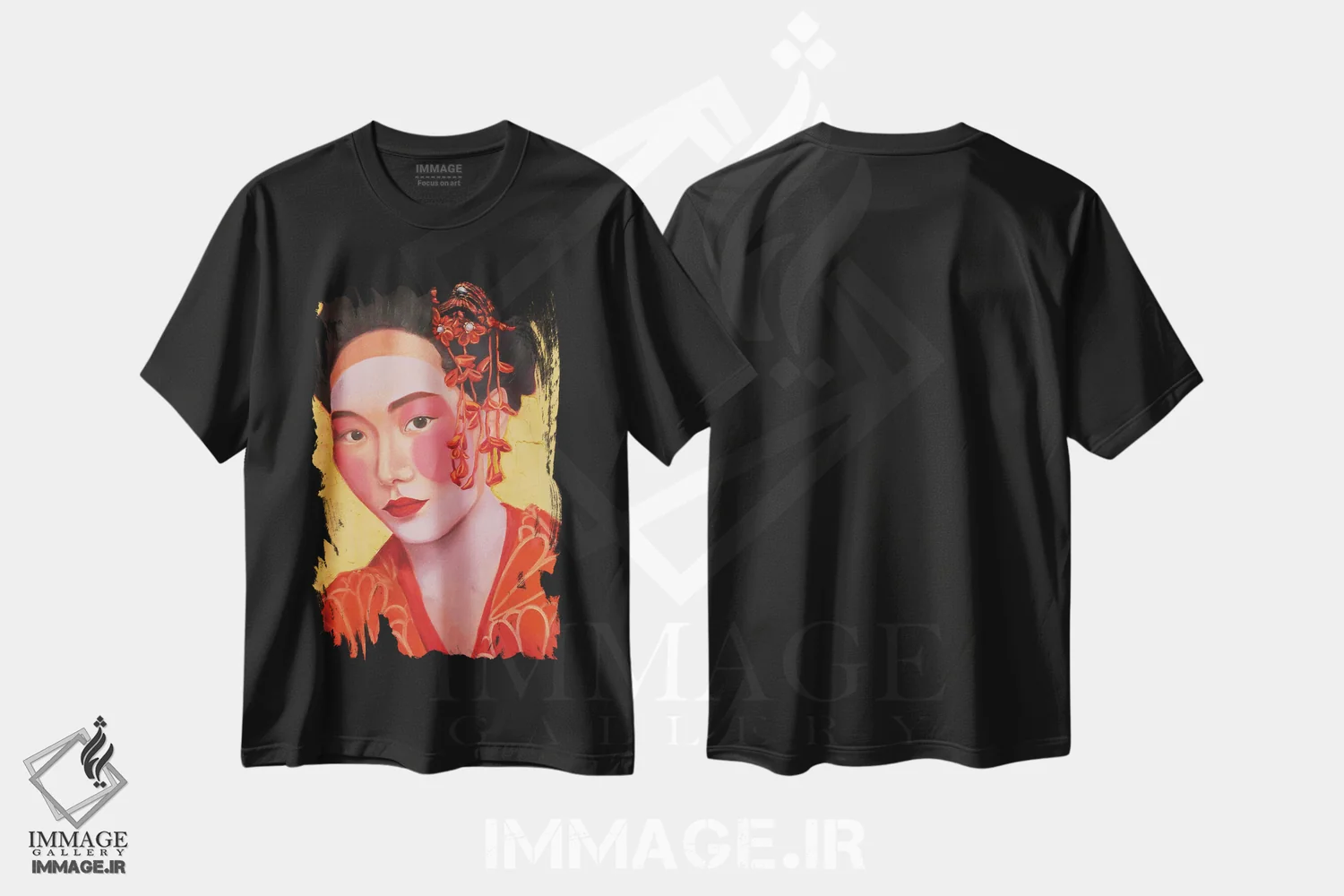 تی شرت هنری «گیشا روی زمینه طلایی شماره ۱»؛ جلوه ای مجلل و کلاسیک