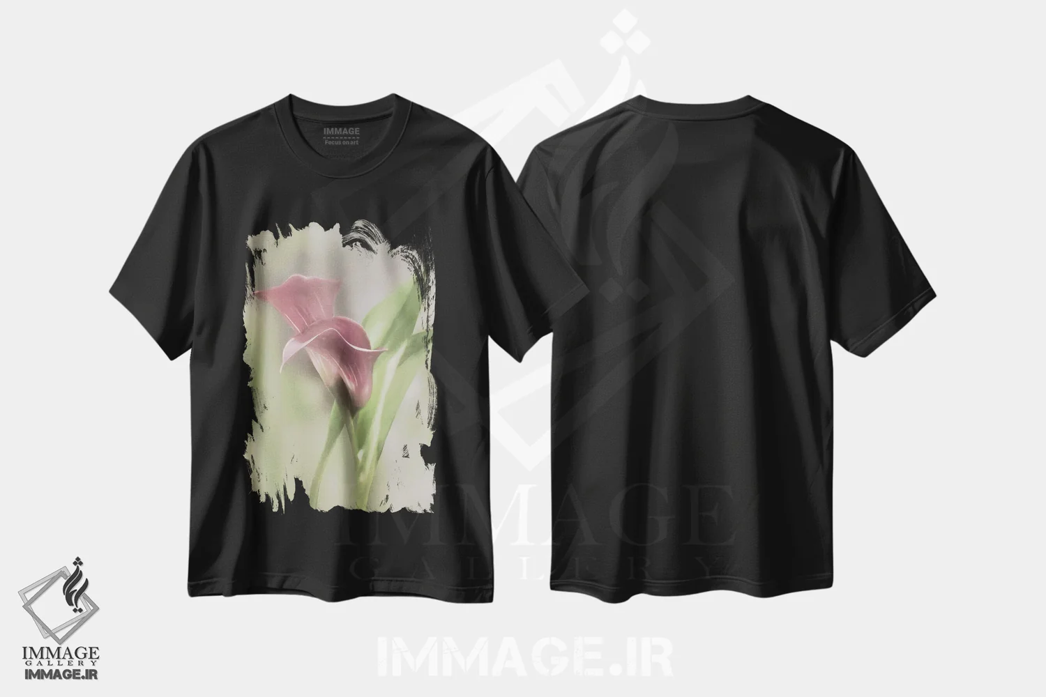 تیشرت مشکی طرح دار گل کالای صورتی، تزئینی اثر لری دیتِر | فروشگاه ایماژ