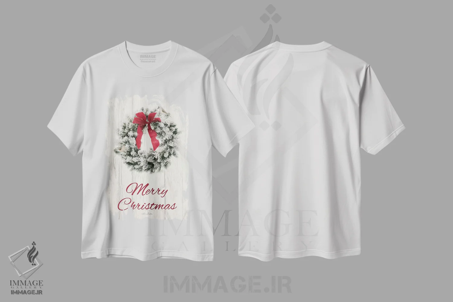 تیشرت سفید طرح دار حلقه گل کریسمس مرغک، تابلو و عبار ت های کریسمسی اثر لری دیتِر | فروشگاه ایماژ