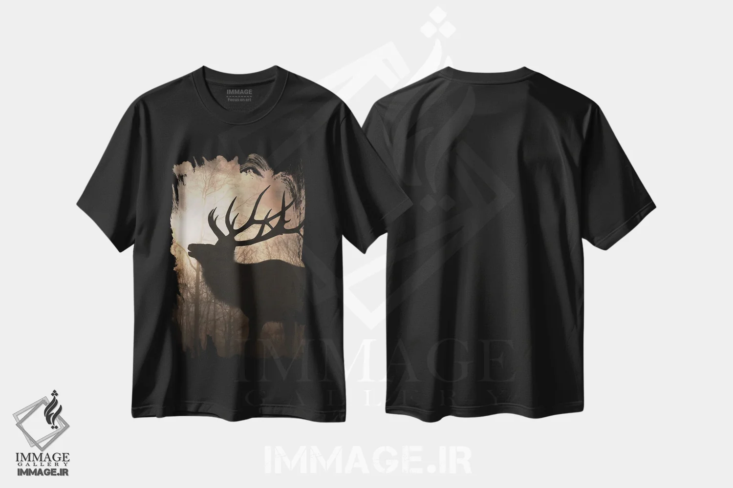 تیشرت مشکی طرح دار "طلوع ماهی شاخدار II"، دکور روستایی اثر لری دیتِر | فروشگاه ایماژ