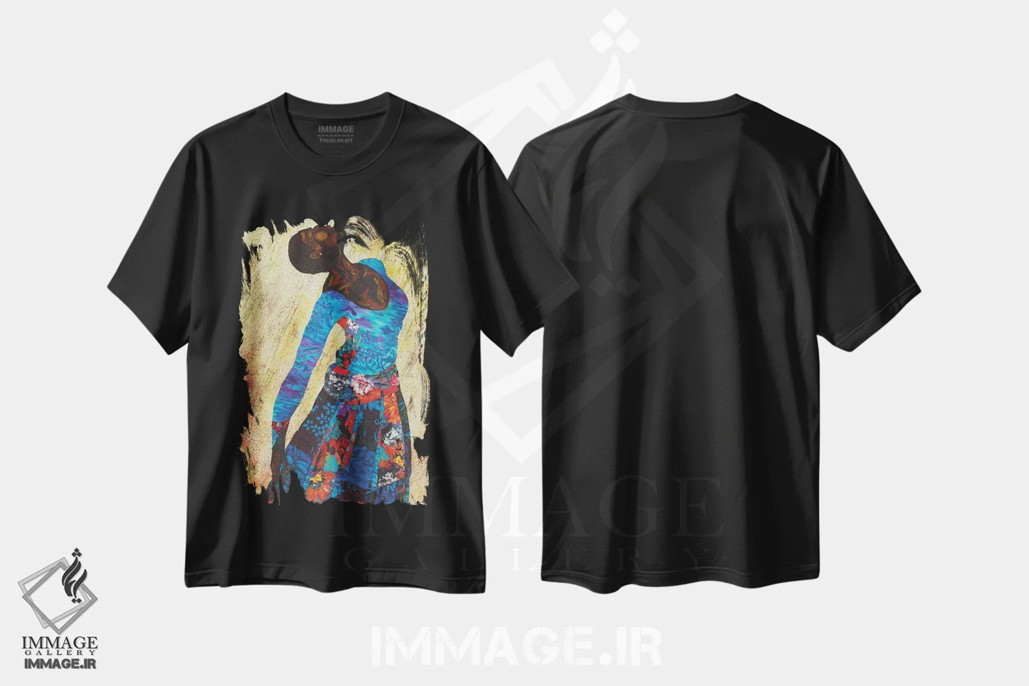 تیشرت مشکی طرح دار "زنی قوی ۴"، هنر آمریکایی آفریقایی تبار اثر آلونزو ساندرز | فروشگاه ایماژ