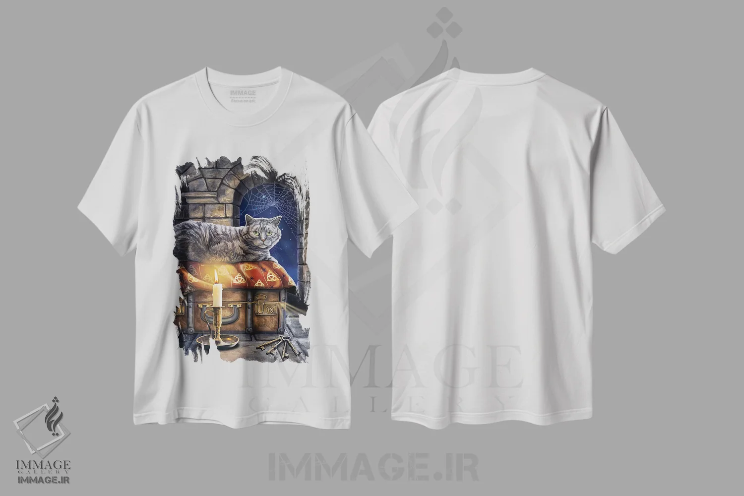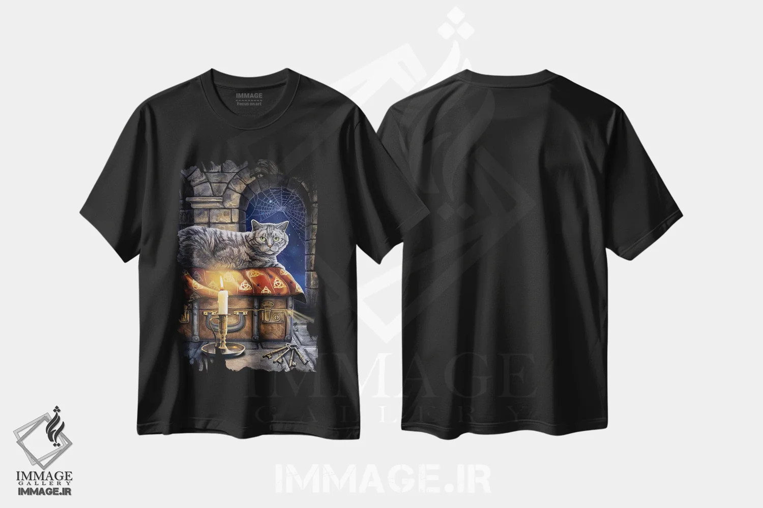 تی شرت هنری «نگهدارندهٔ اسرار»؛ گربه راه راه در نگاه رازآلود