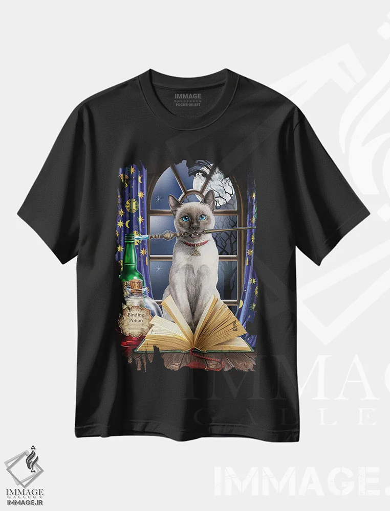 تیشرت مشکی طرح دار – تیشرت گربه ,"هُکاس پوکاس" اثر لیزا پارکر immage.ir