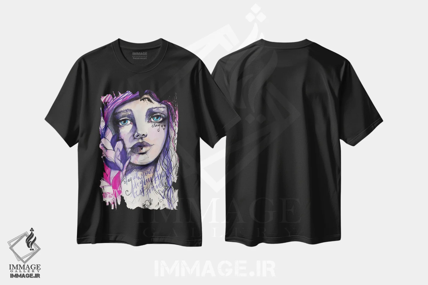تی شرت هنری «بمان»؛ پرتره زنانه با حال وهوای شاعرانه