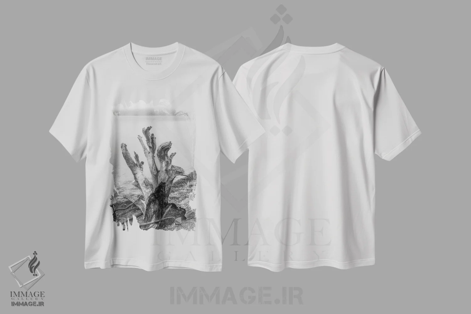تی شرت هنری «کنده درخت پیچ خورده»؛ طبیعتِ سیاه وسفید برای استایل وینتیج