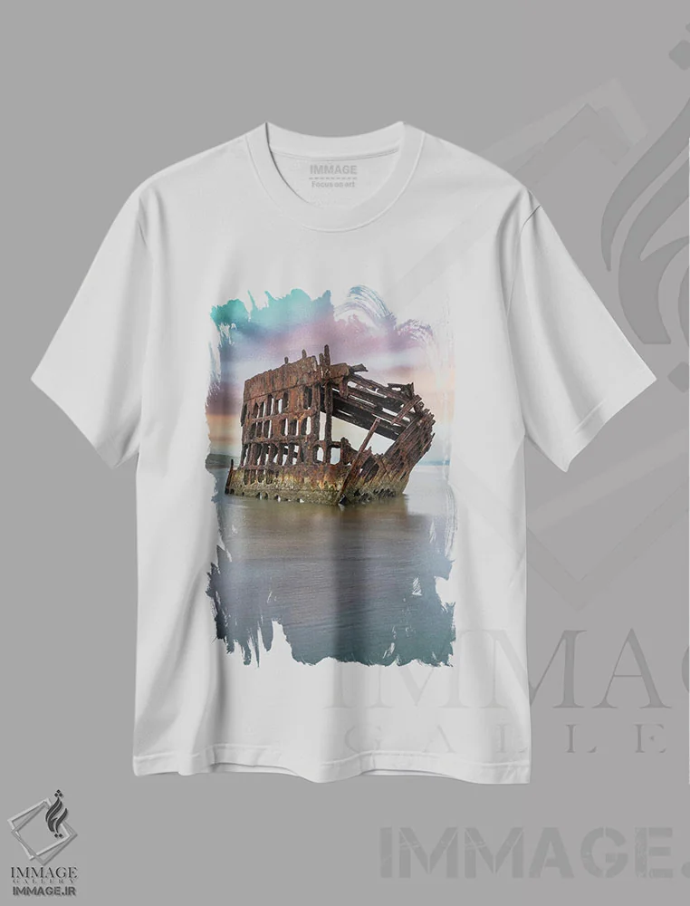 تیشرت سفید طرح دار – تیشرت طبیعت ,لاشه کشتی رنگین کمانی اثر لوئیس راث immage.ir